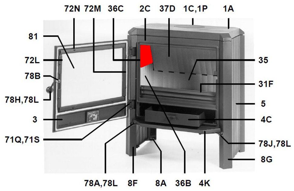 originale pietra laterale a sinistra in alto per stufa a legna Olsberg Skagen 8